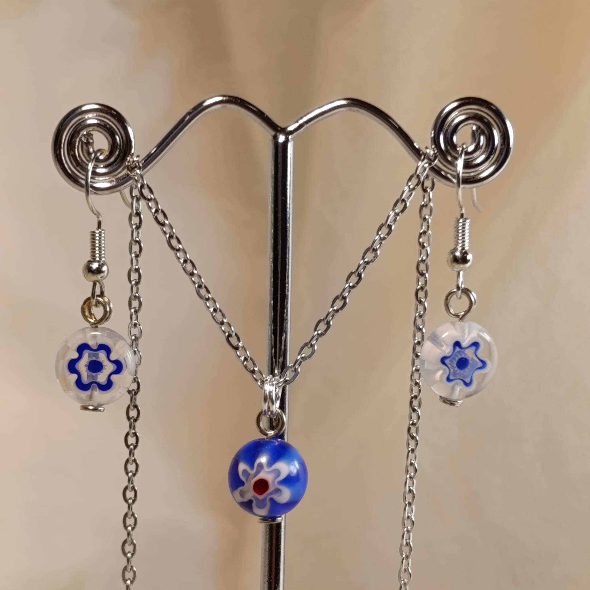 Souprava náušnice a řetízek s přívěskem – Benátské sklo Murano – Millefiori. Délka řetízku 50cm. Materiál sklo a chirurgická ocel.