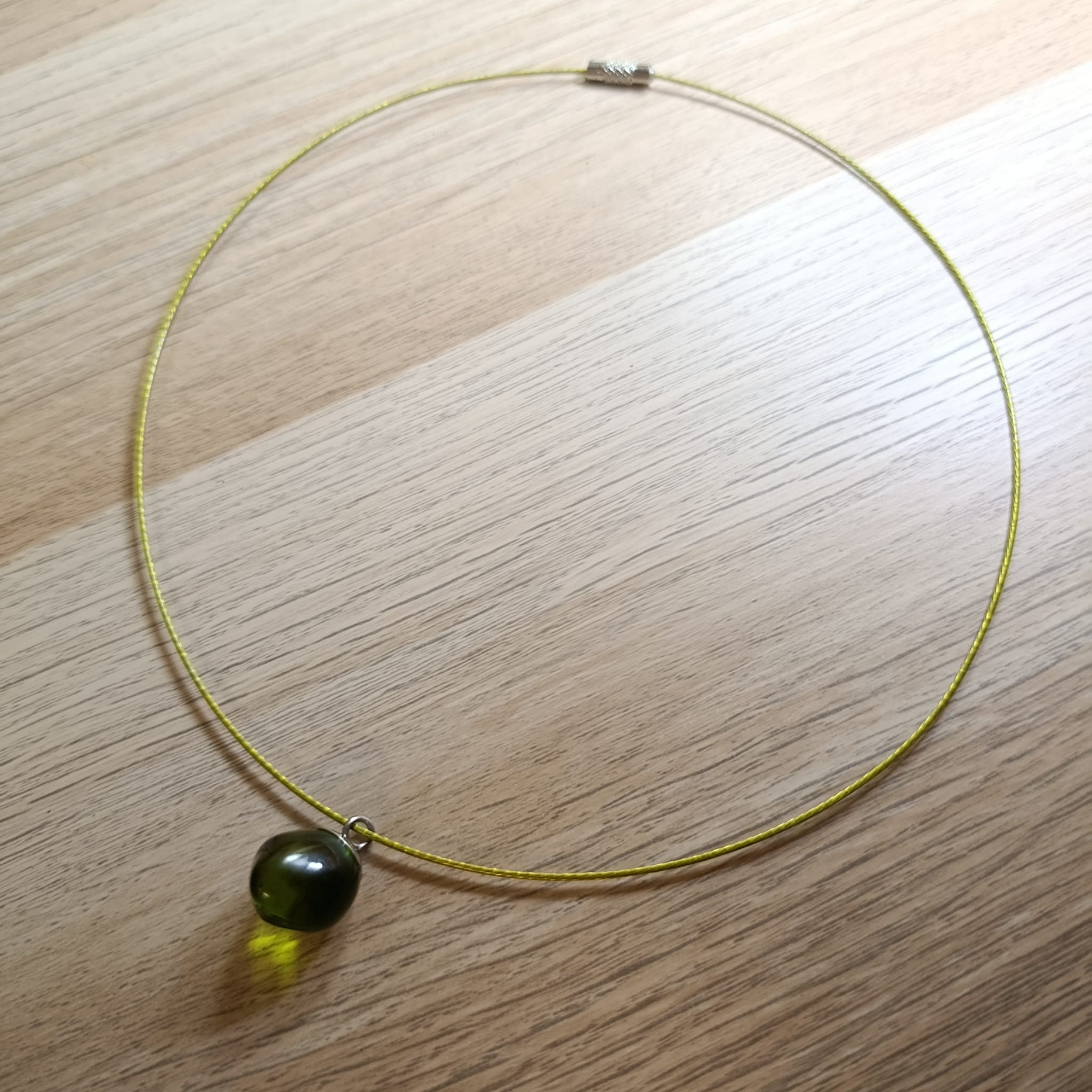 Více o produktu Náhrdelník rustikální skleněná kapka na struně 47 cm | unikát