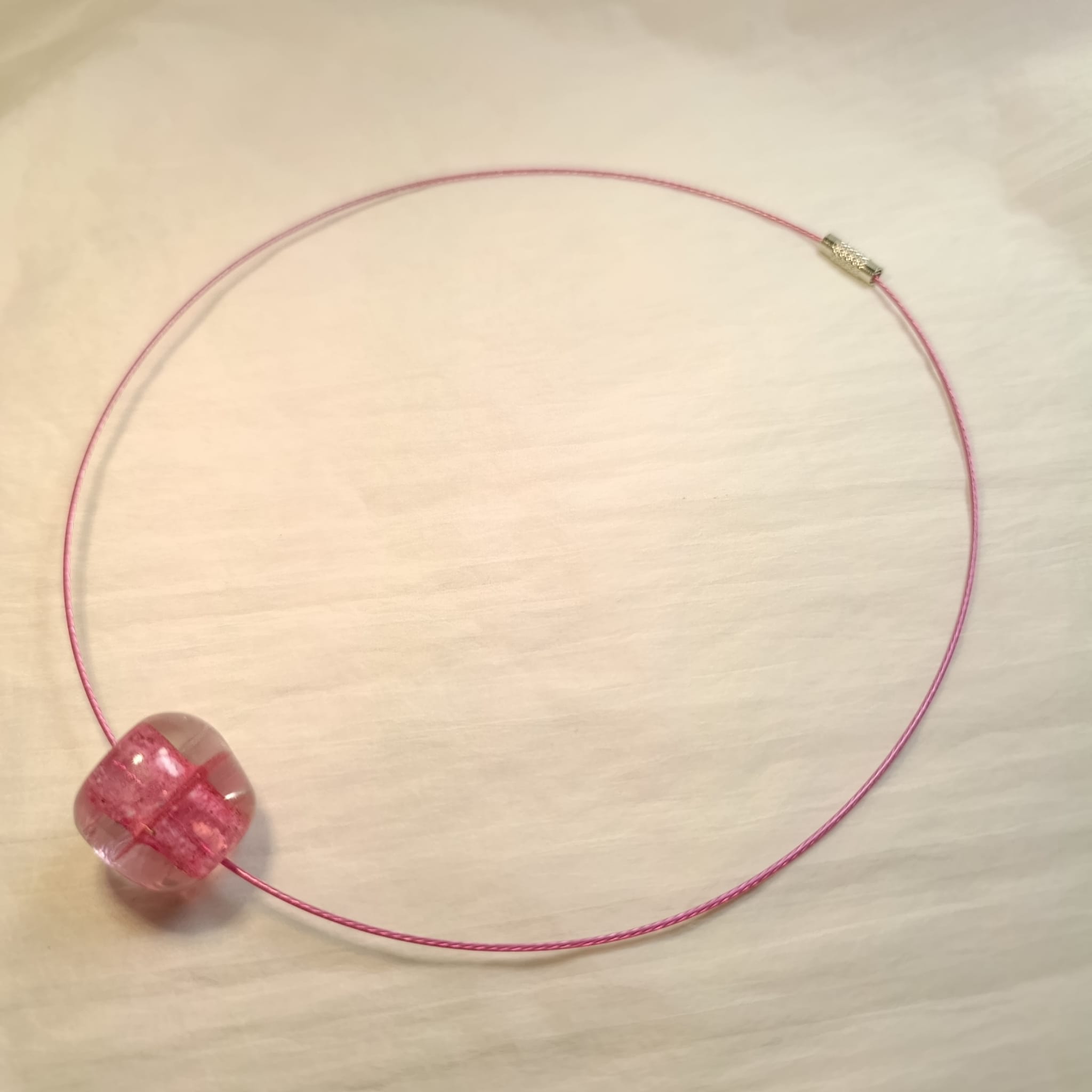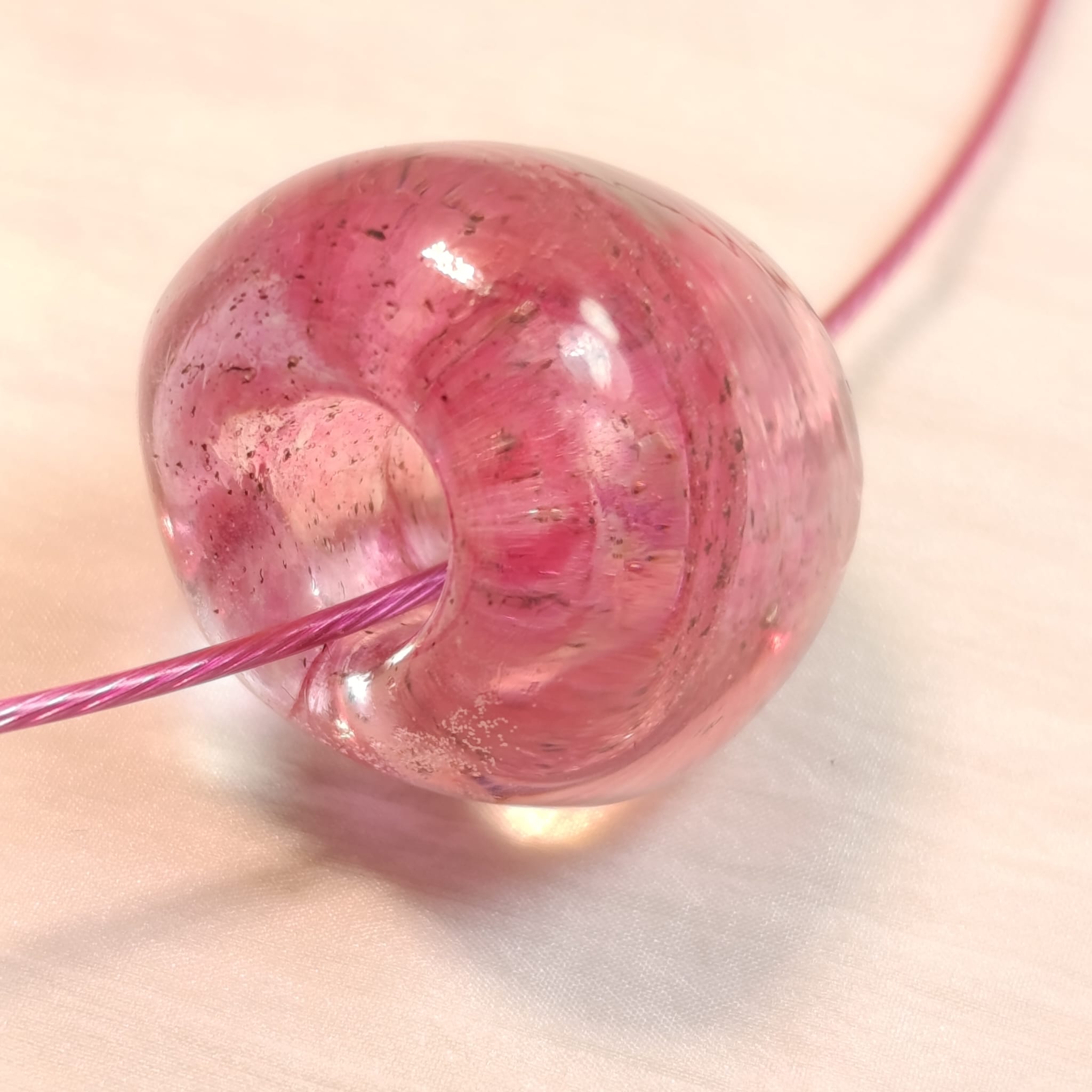 Více o produktu Náhrdelník velká vinutá skleněná perle na struně 47 cm