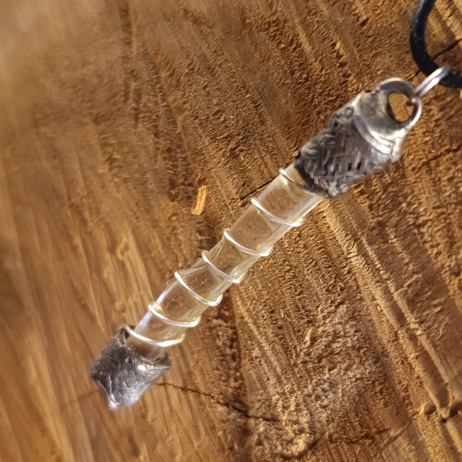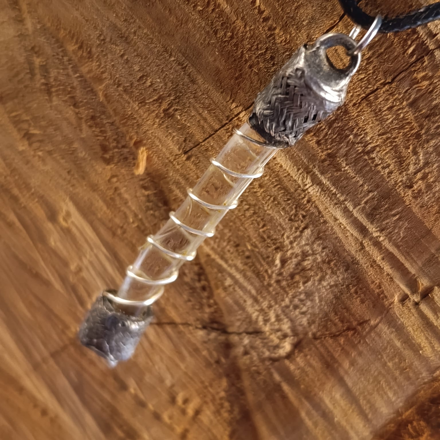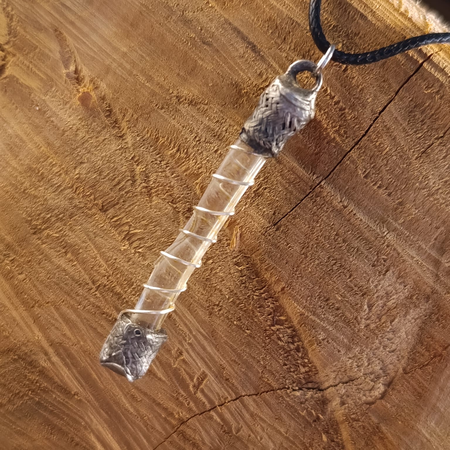 Hravě mu říkám Pojistka. Ve skutečnosti kdysi kapka skla, která unikla roztavení v bývalé skelné huti. Našla si mě v lesích, v pozůstatcích této prastaré sklárny..