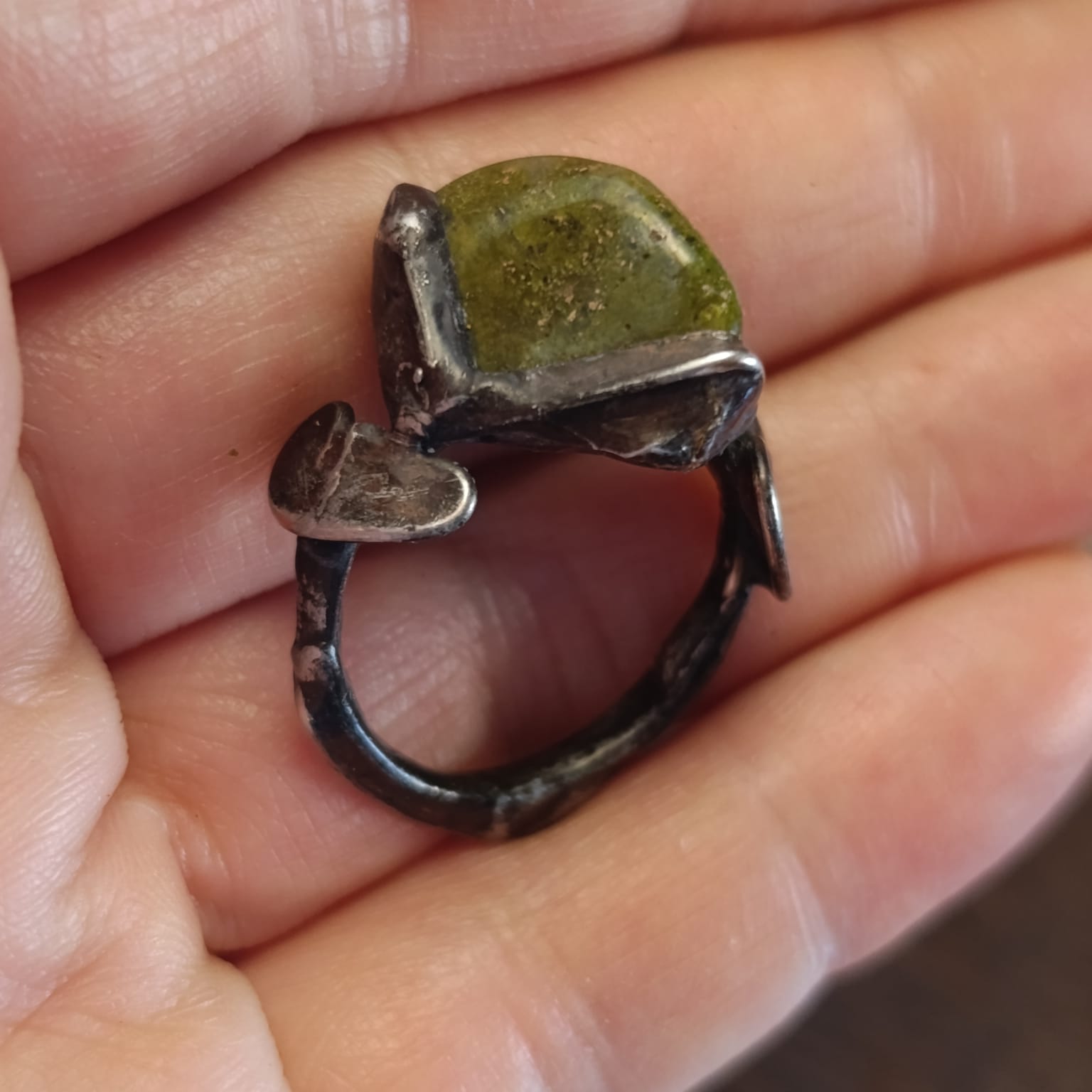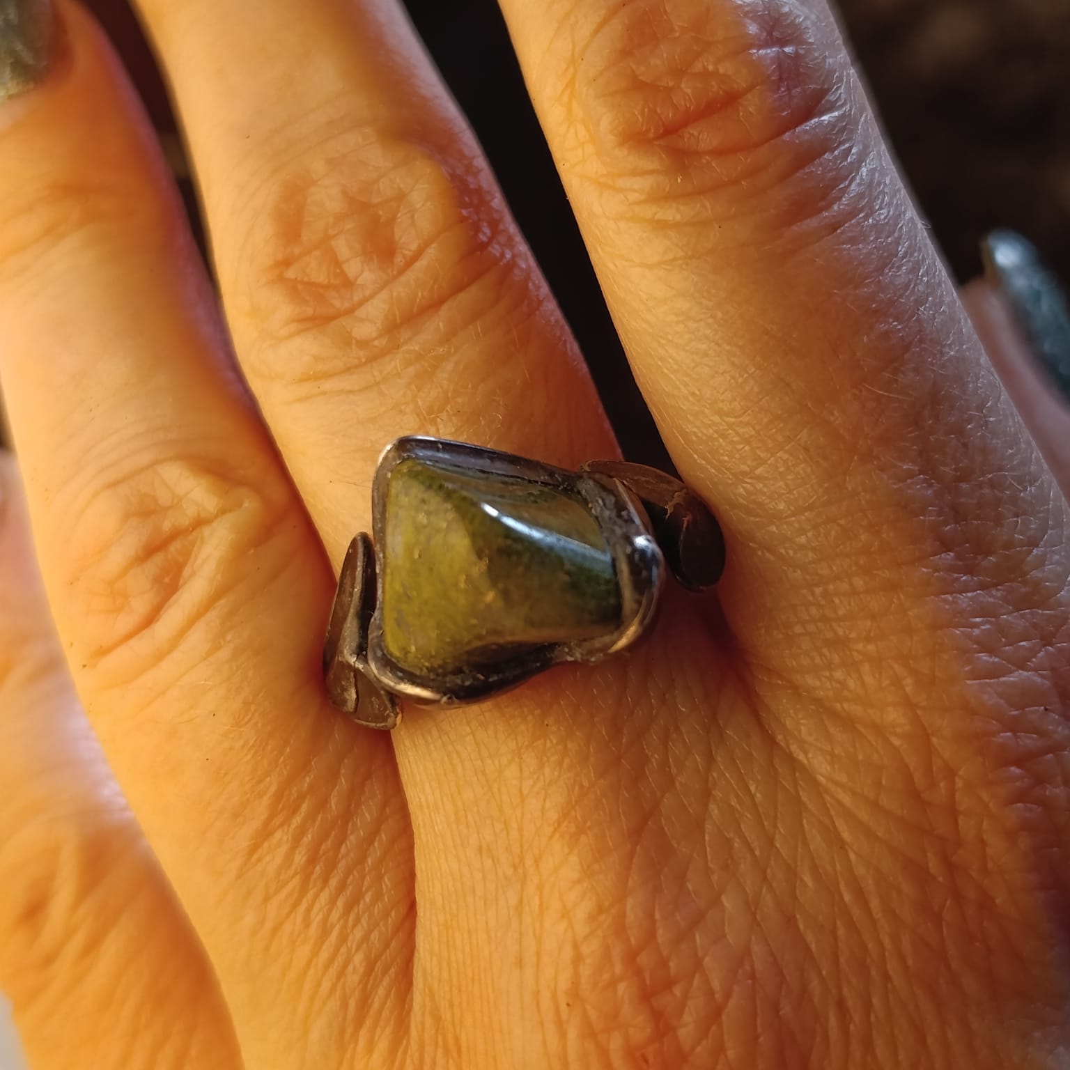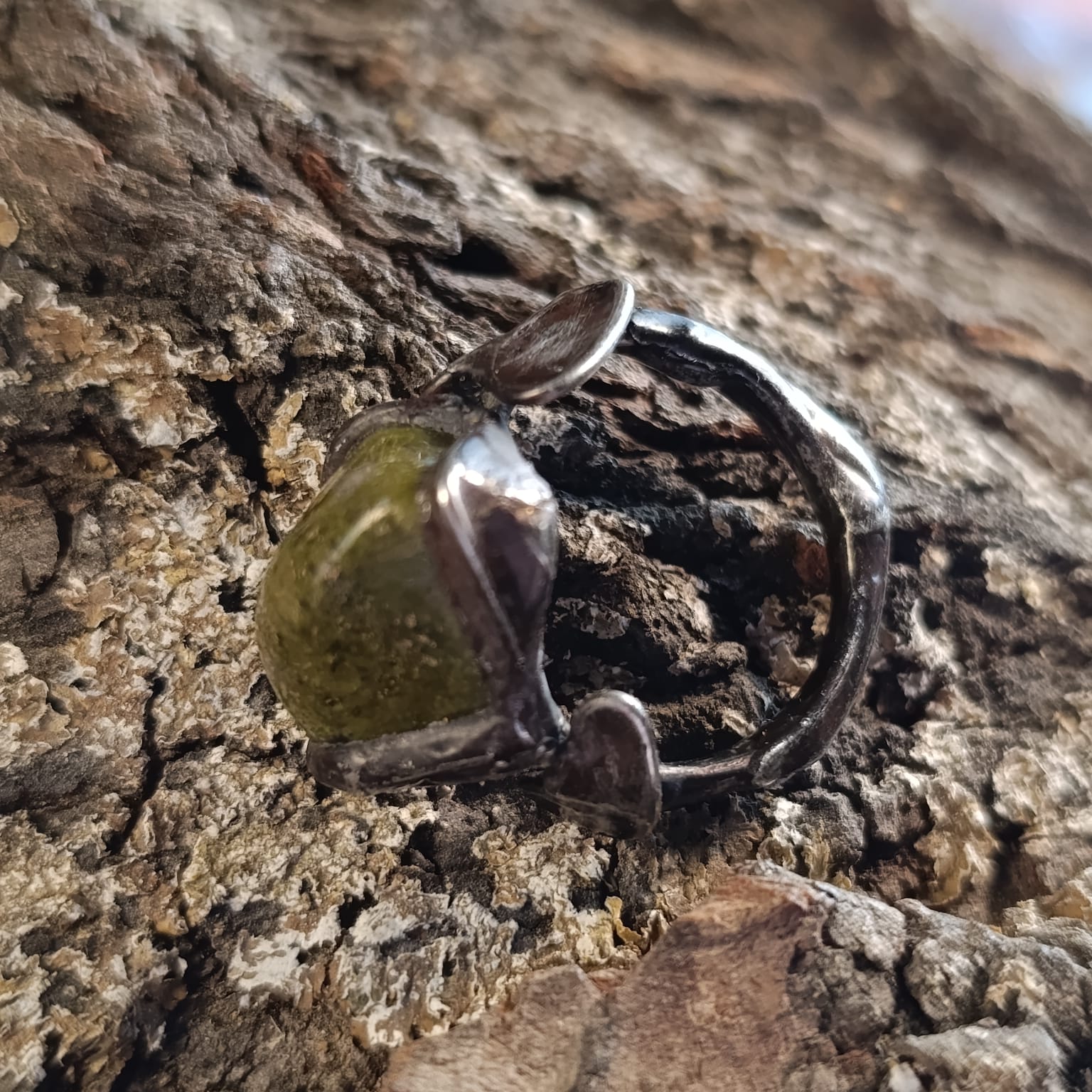 Tento prsten se zeleným serpentinem si můžeš prohlížet ze sta různých úhlů a vždycky bude jiný, ten se neomrzí.