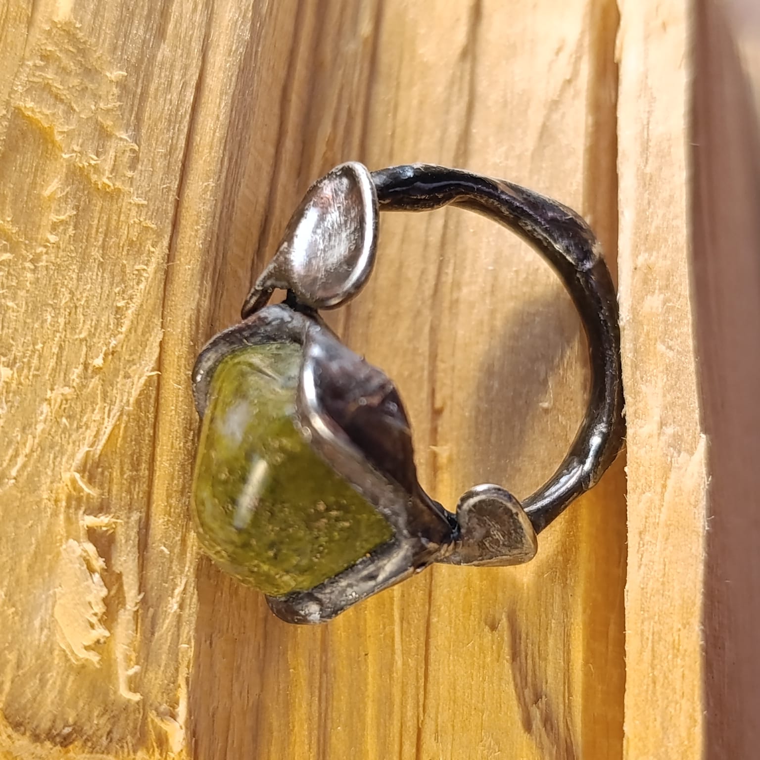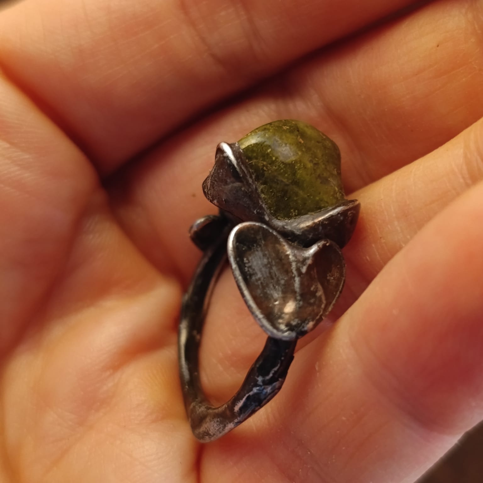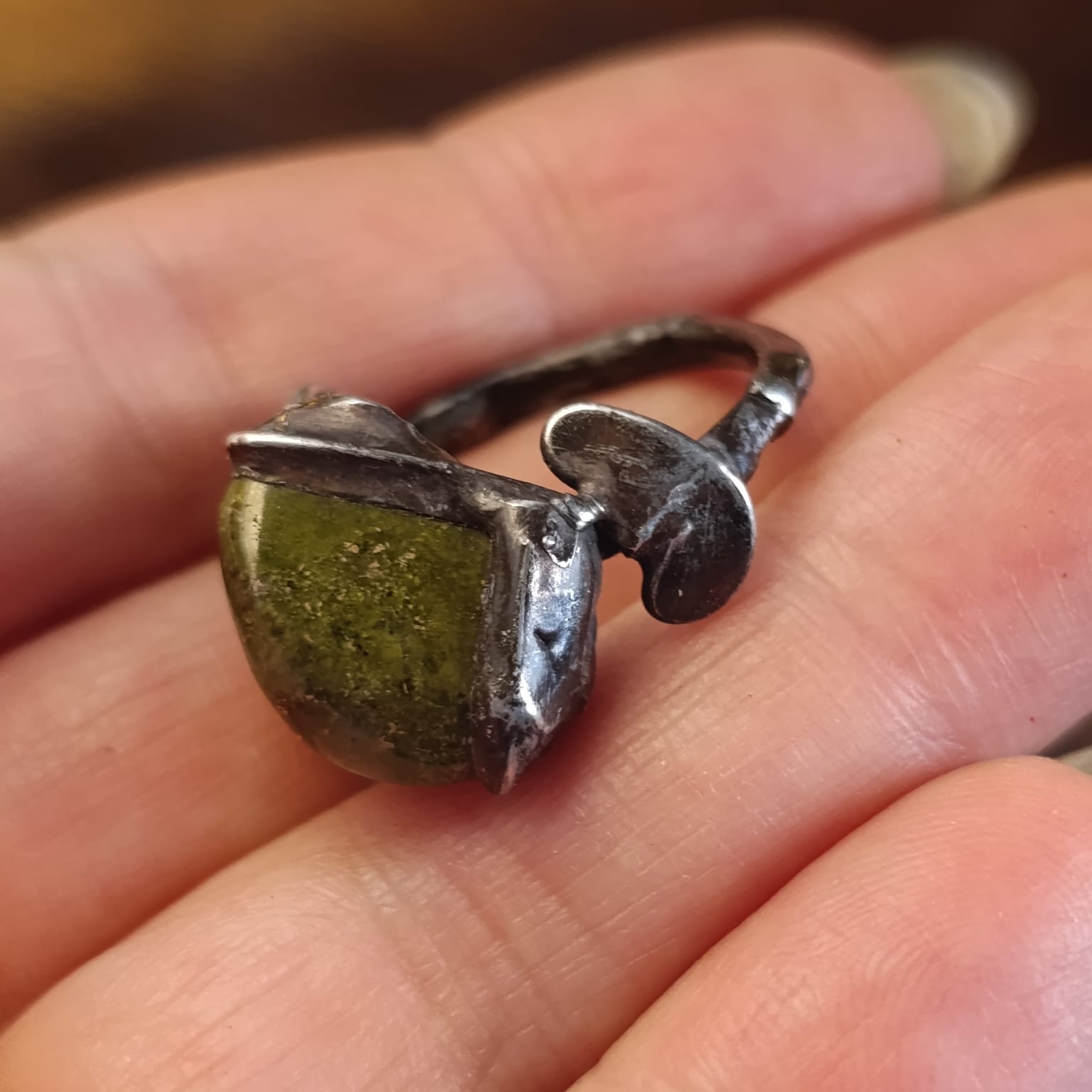 Tento prsten se zeleným serpentinem si můžeš prohlížet ze sta různých úhlů a vždycky bude jiný, ten se neomrzí.