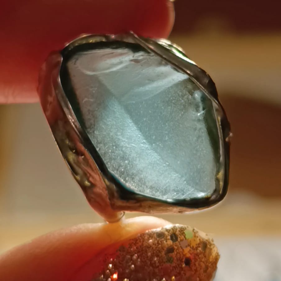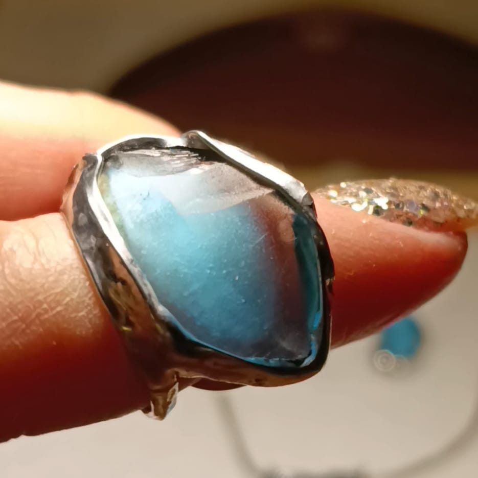 Prsten Ledové oko s modrým sea glass. Jedná se o jediný prsten v této podobě, Pokud Vám učarovalo modré mořeké sklo, je možné si objednat jiný prsten s jiným tvarem skla, ale ve vaší velikosti. K tomuto prstenu dostanete krabičku zdarma.