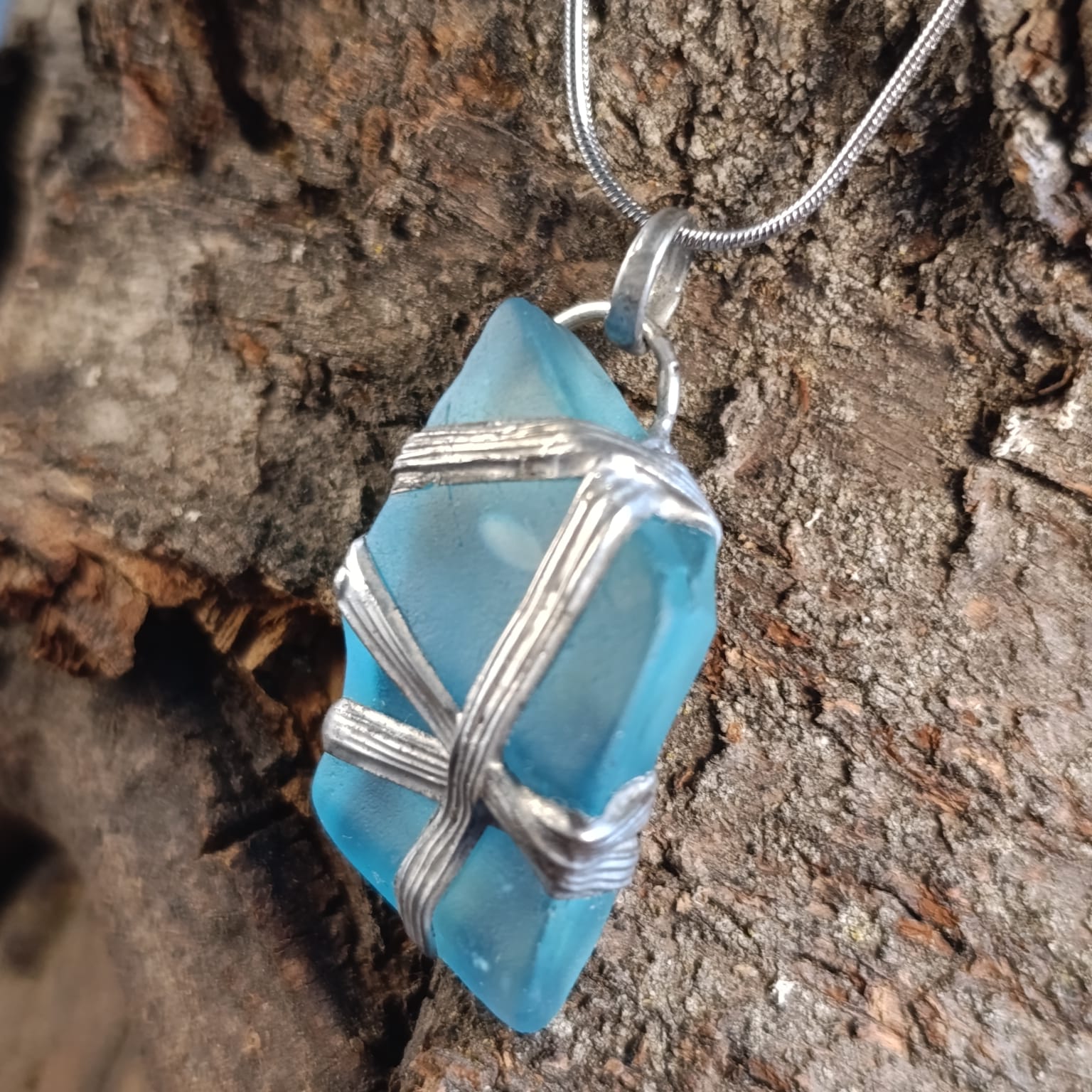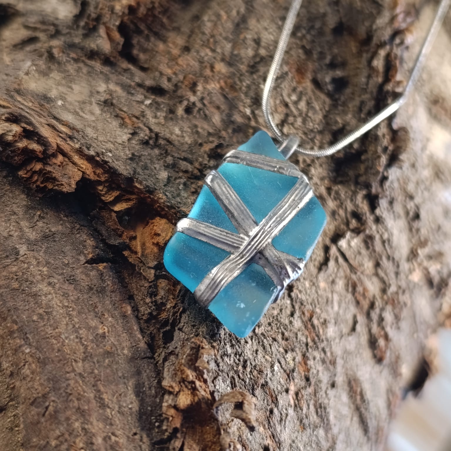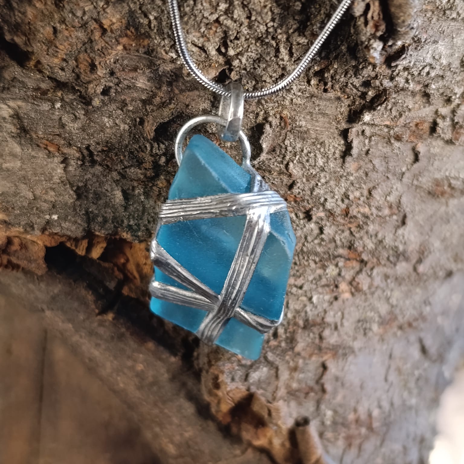 Náhrdelník z mořského skla.. Bezpečně ovinutý, zacínovaný, s krásnou bublinkou uvnitř.. Talisman pro pocit klidu a bezpečí. Pochází z historické lahve zajímavých tvarů..