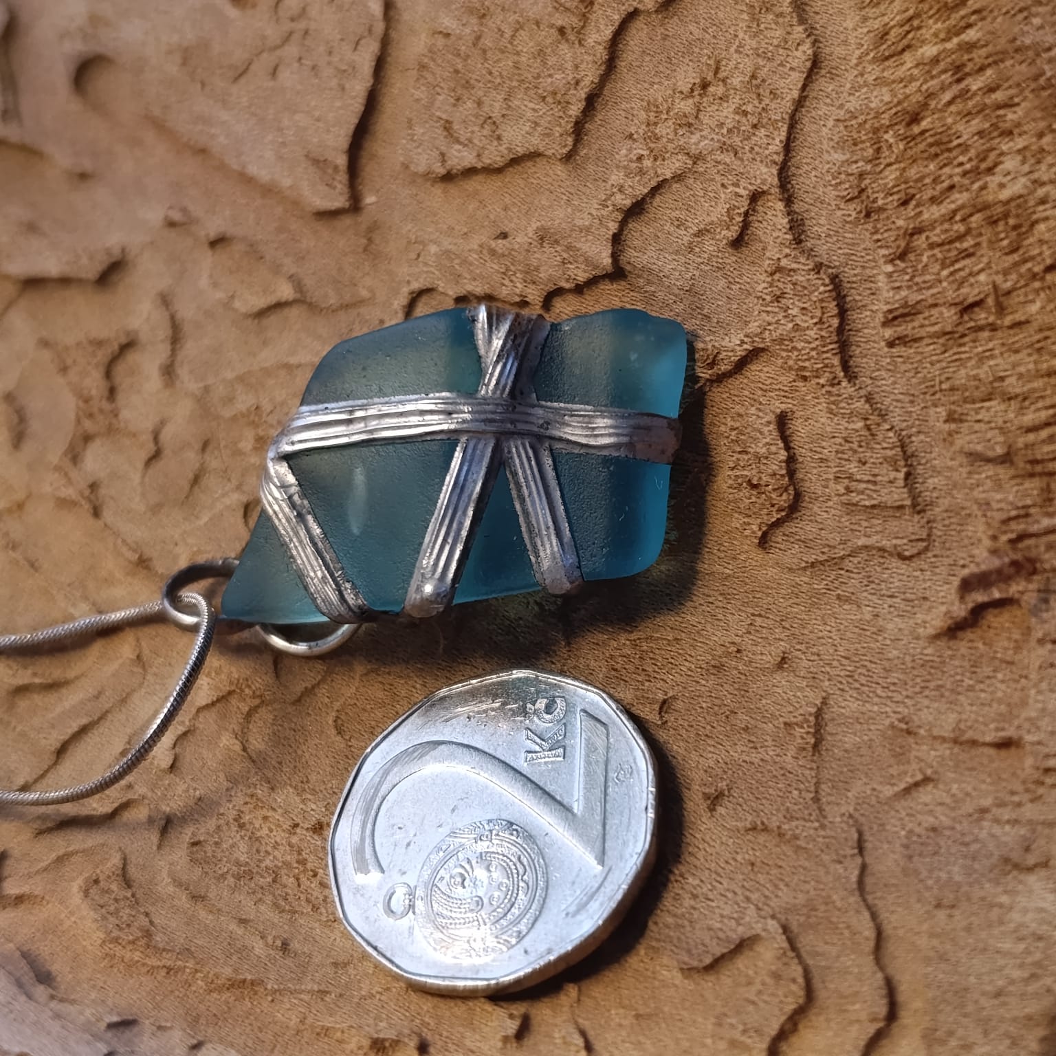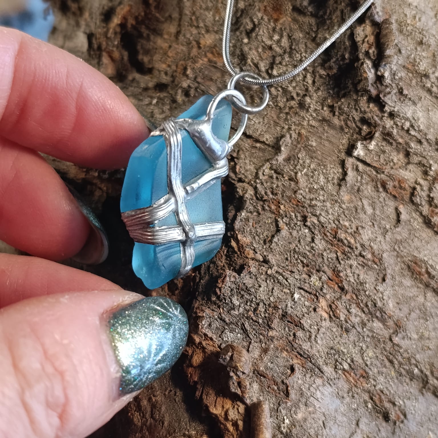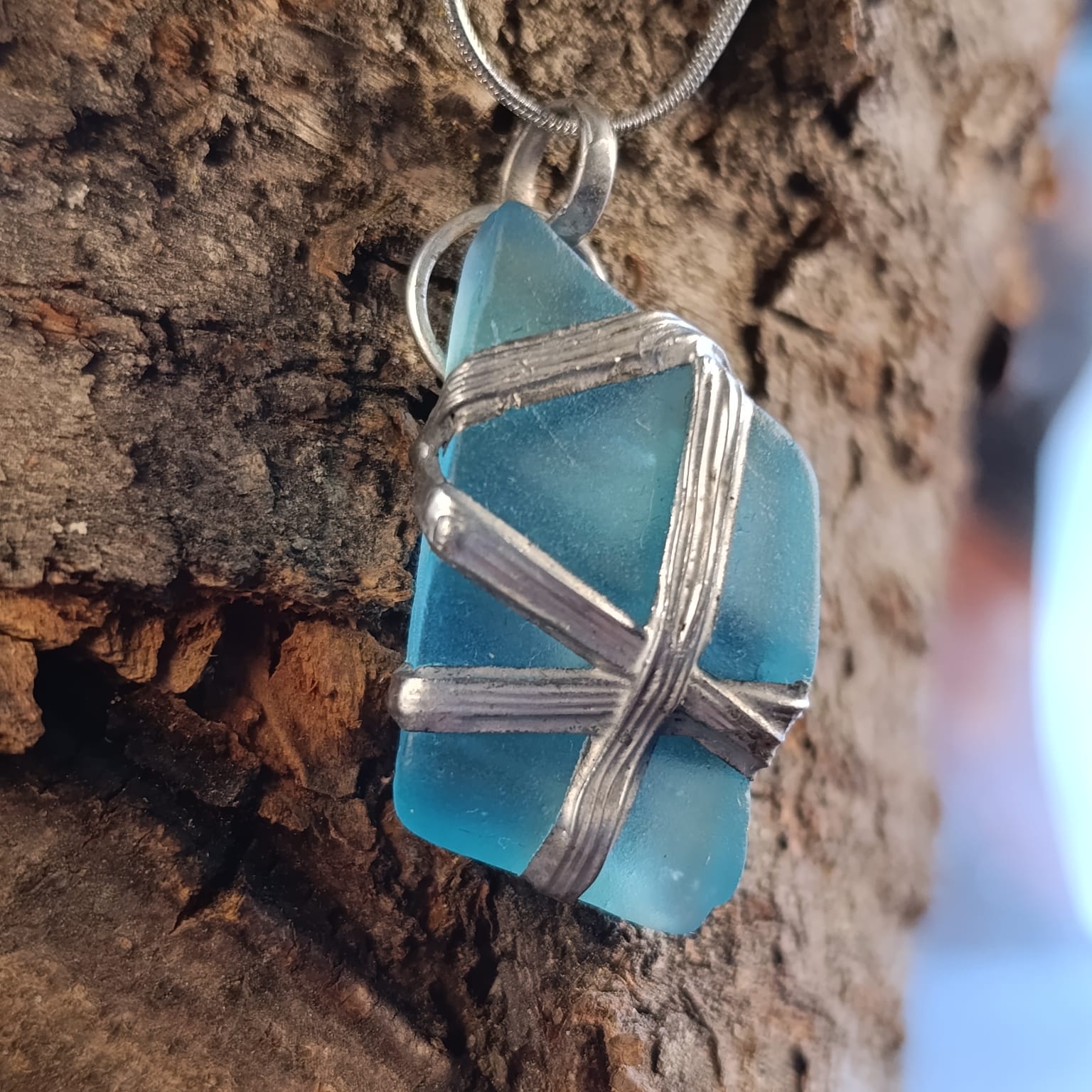 Náhrdelník z mořského skla.. Bezpečně ovinutý, zacínovaný, s krásnou bublinkou uvnitř.. Talisman pro pocit klidu a bezpečí. Pochází z historické lahve zajímavých tvarů..
