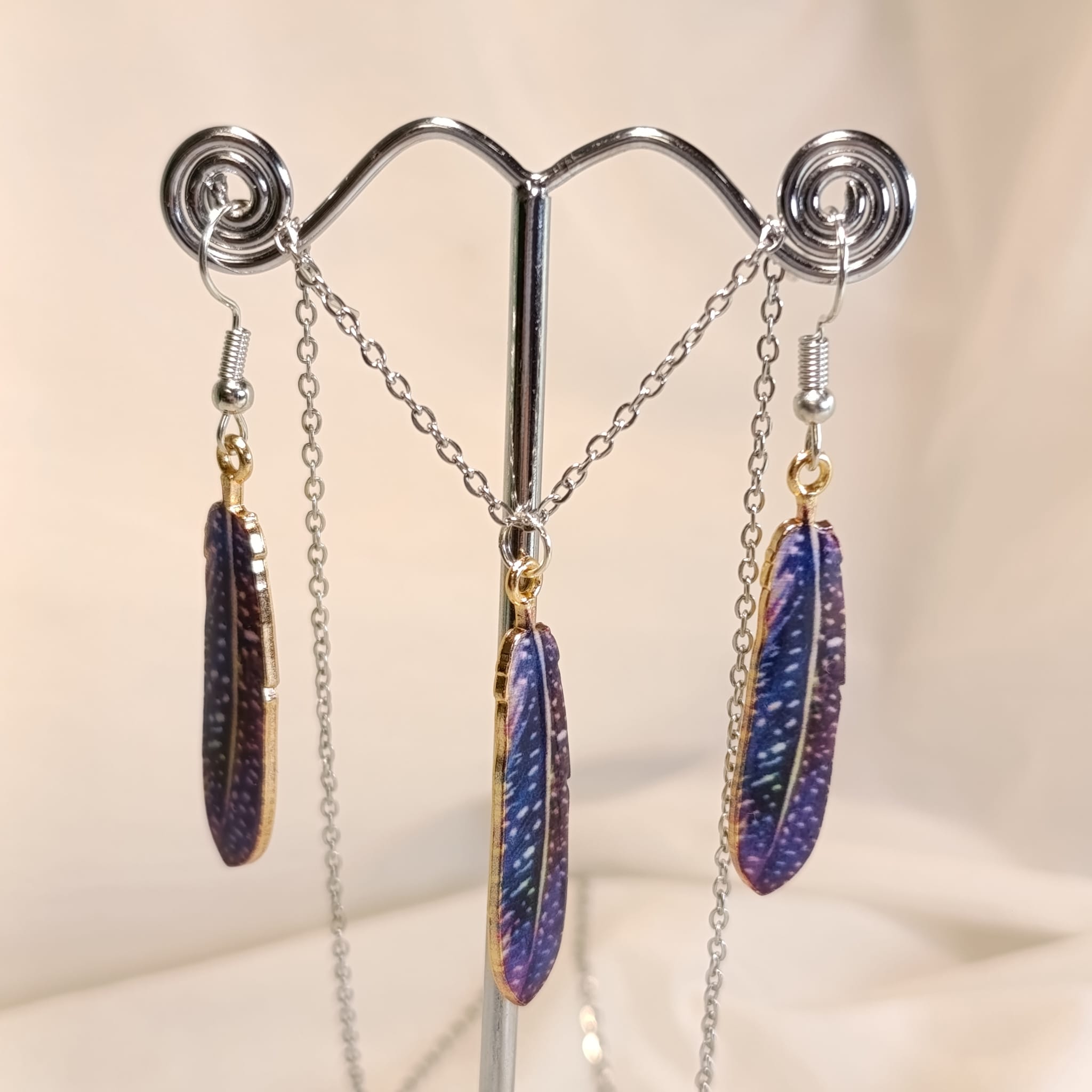 Set náušnice + řetízek. Peříčka na chirurgické oceli, řetízek 50 cm