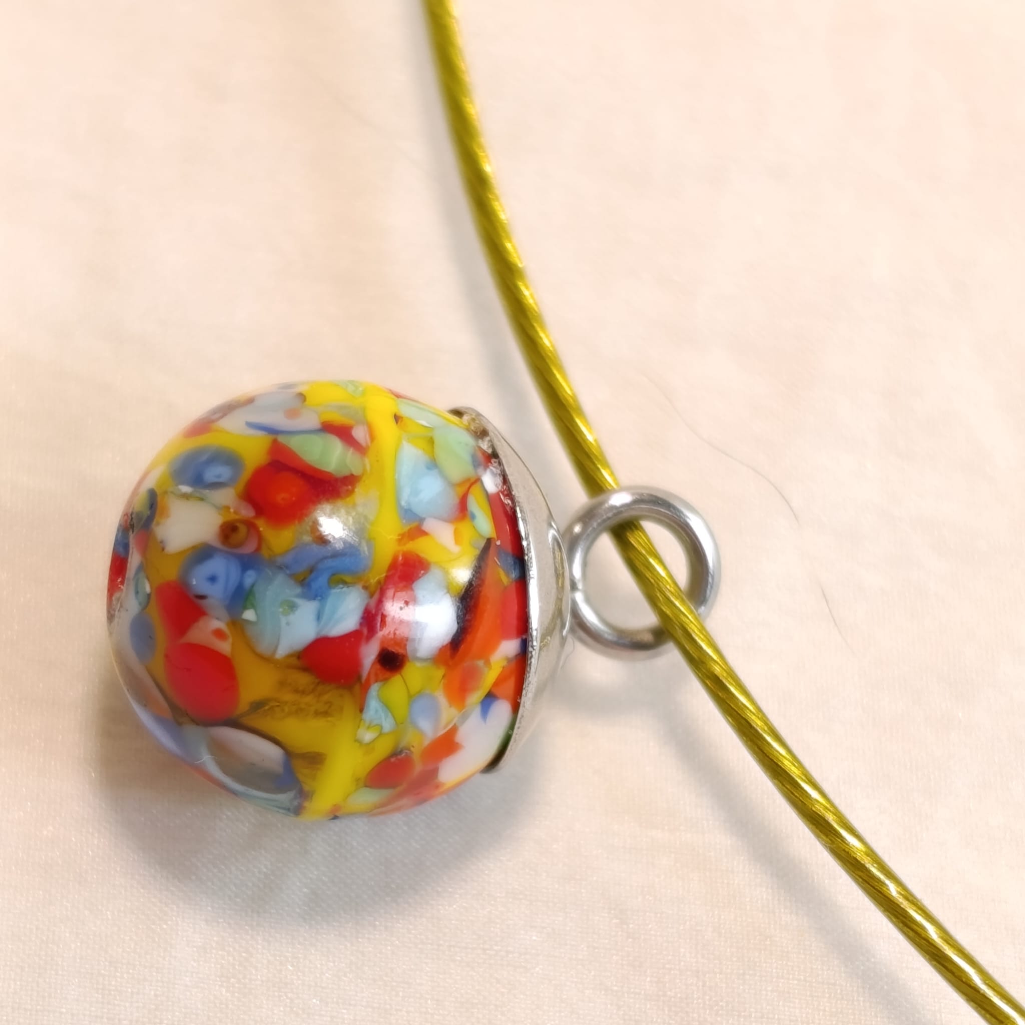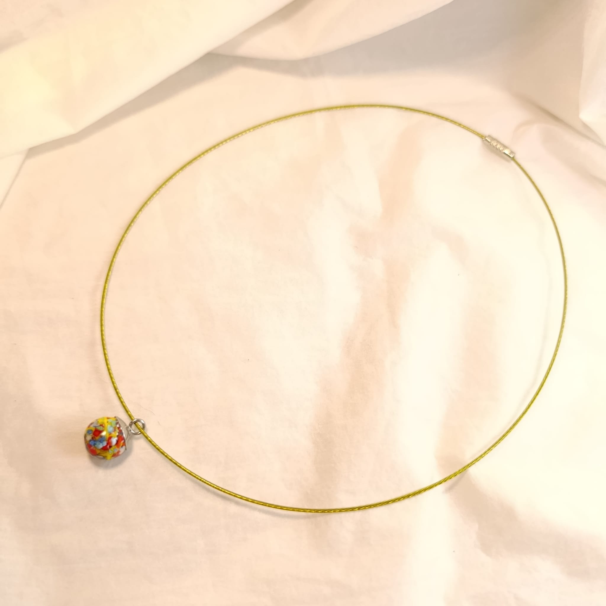 Skleněný náhrdelník se strunou. Délka struny 47cm.