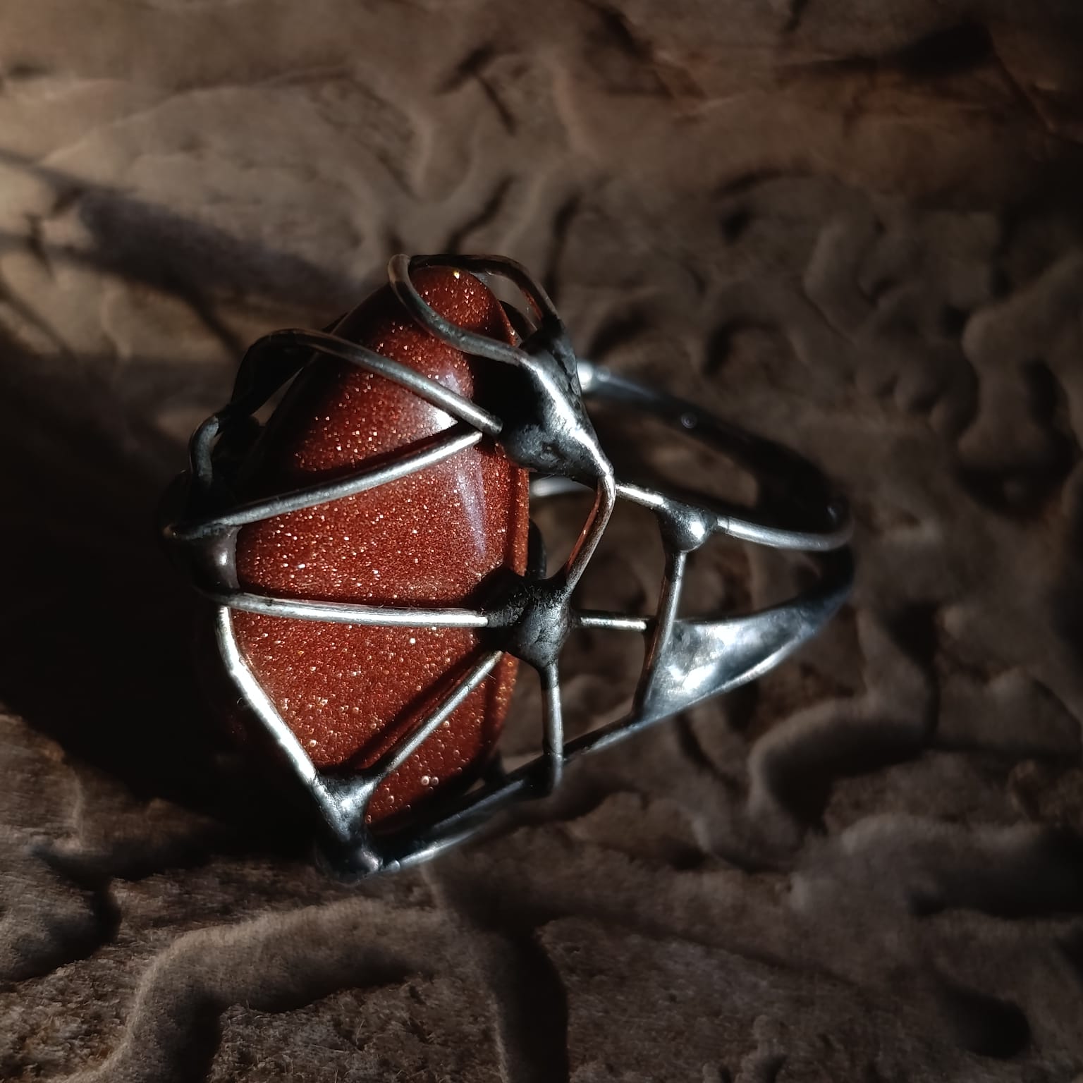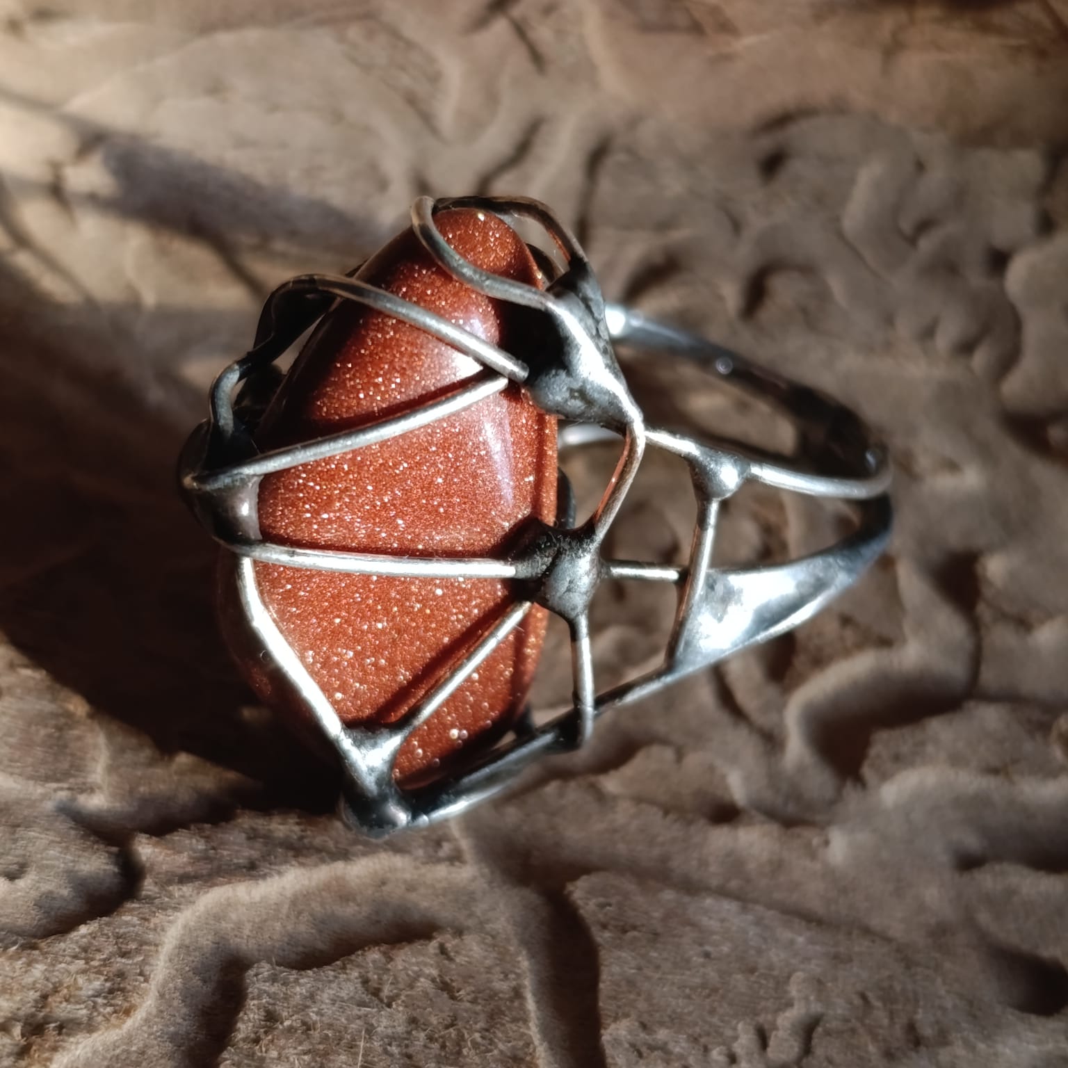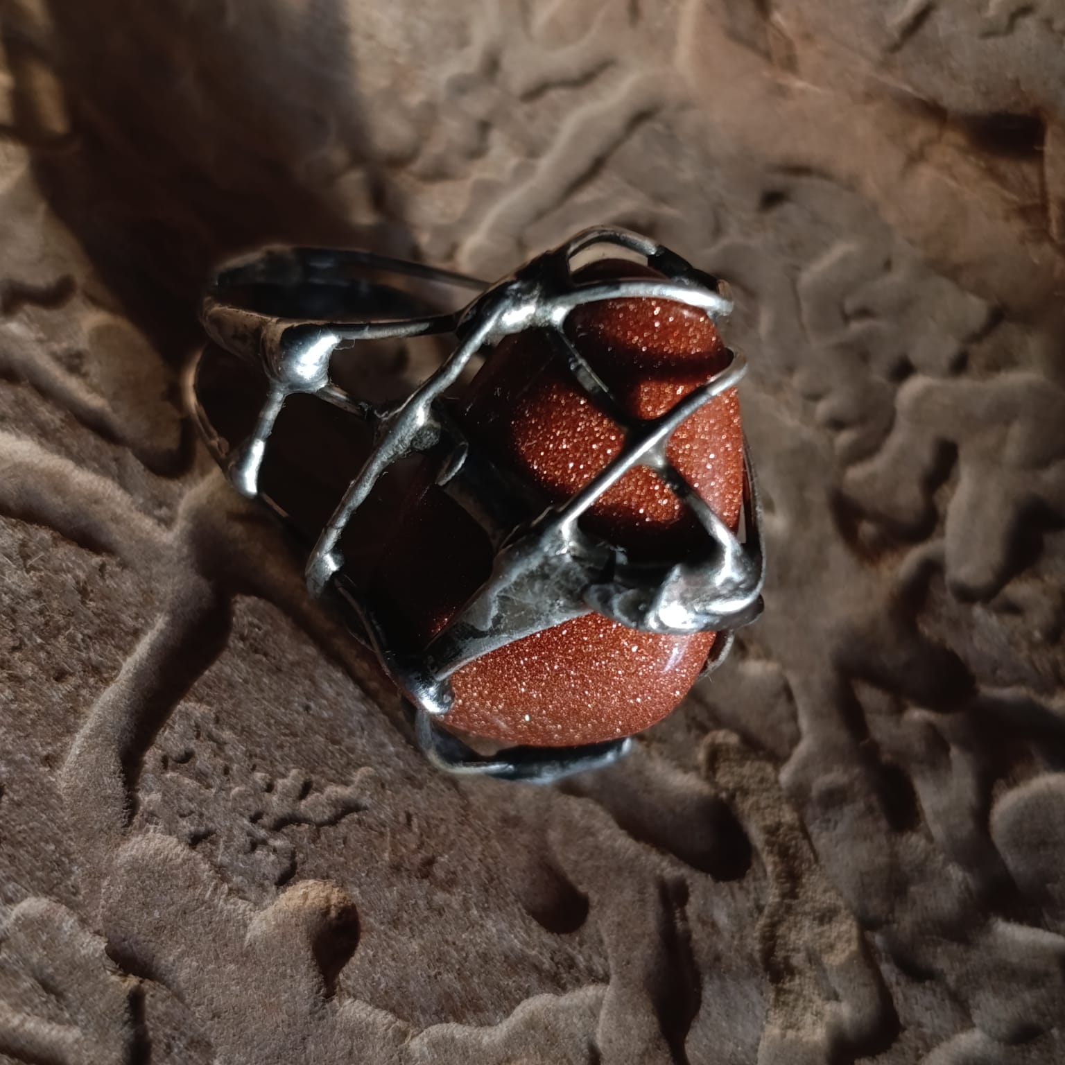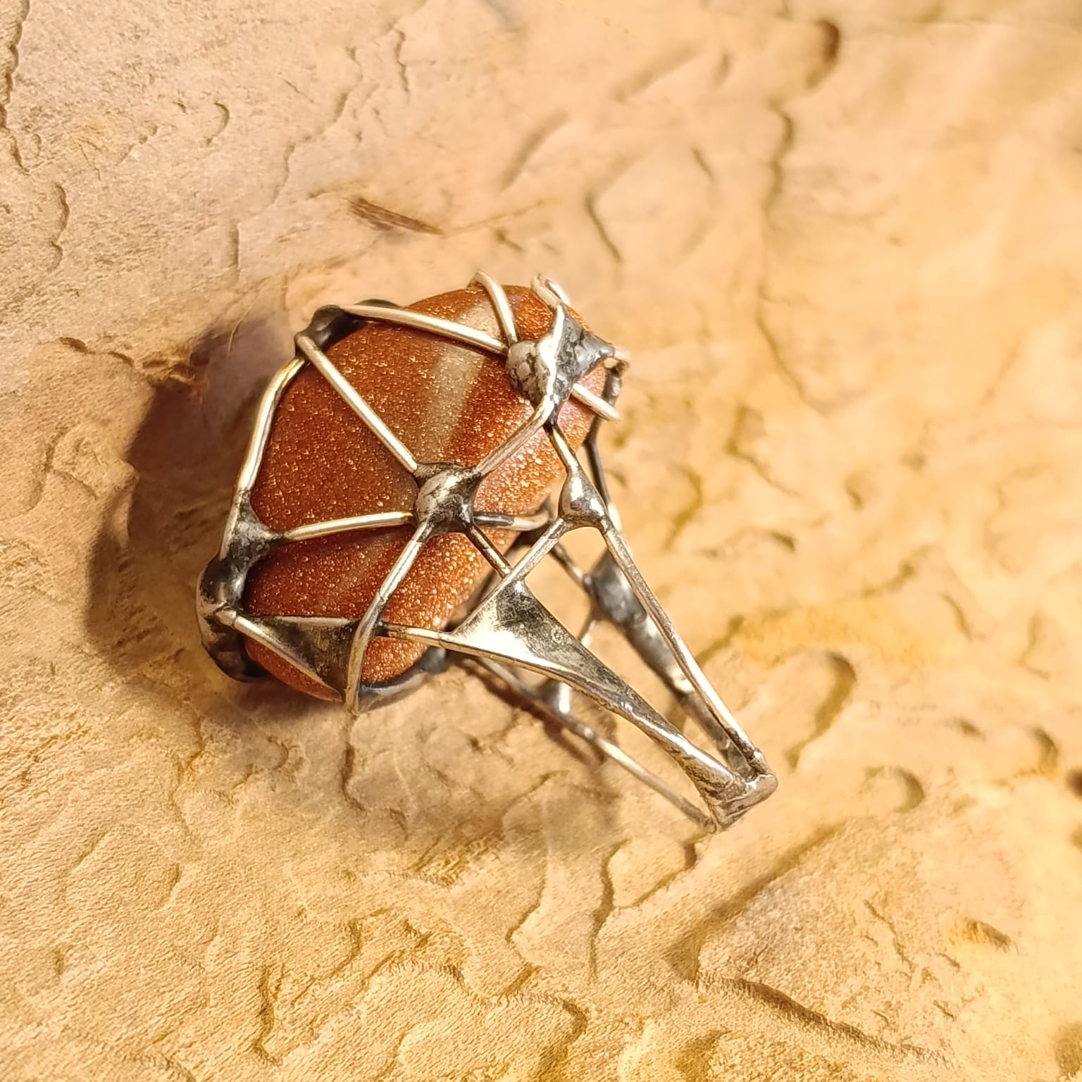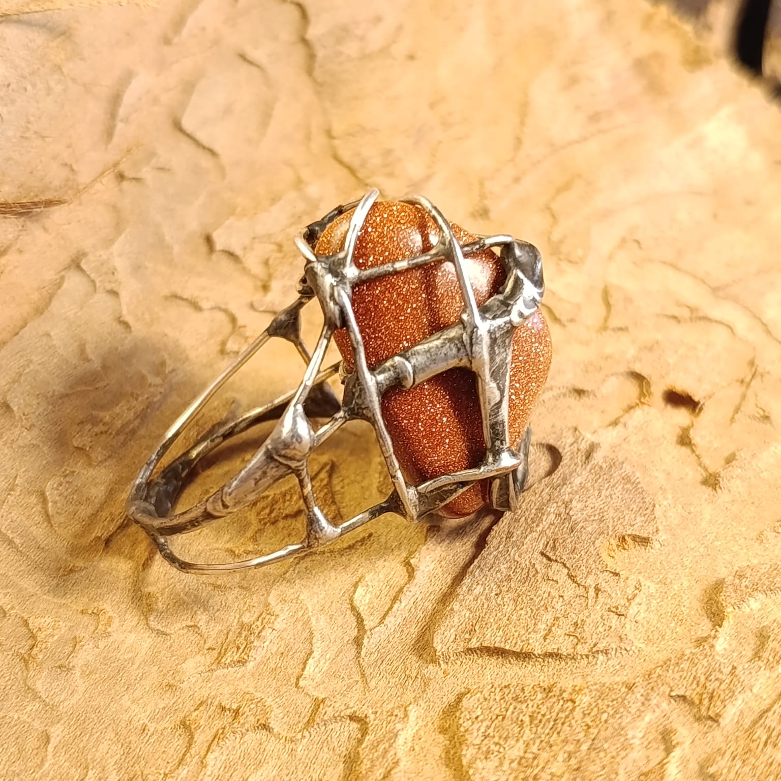 Odvážný prsten pro muže i pro mocnou ženu. Zlatý avanturin se ale necítí být v kleci, cítí se v bezpečí.